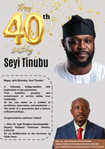 Today, I join millions of Nigerians at home and in the diaspora to celebrate a visionary, bridge-builder, and symbol of youthful inspiration — Seyi Tinubu, as he gracefully marks his 40th birthday.