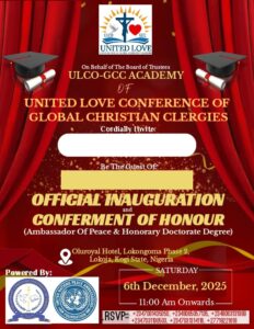UN Ambassador | President, United Love Conference of Global Christian Clergies | Bishop | Philanthropist | Visionary Leader