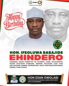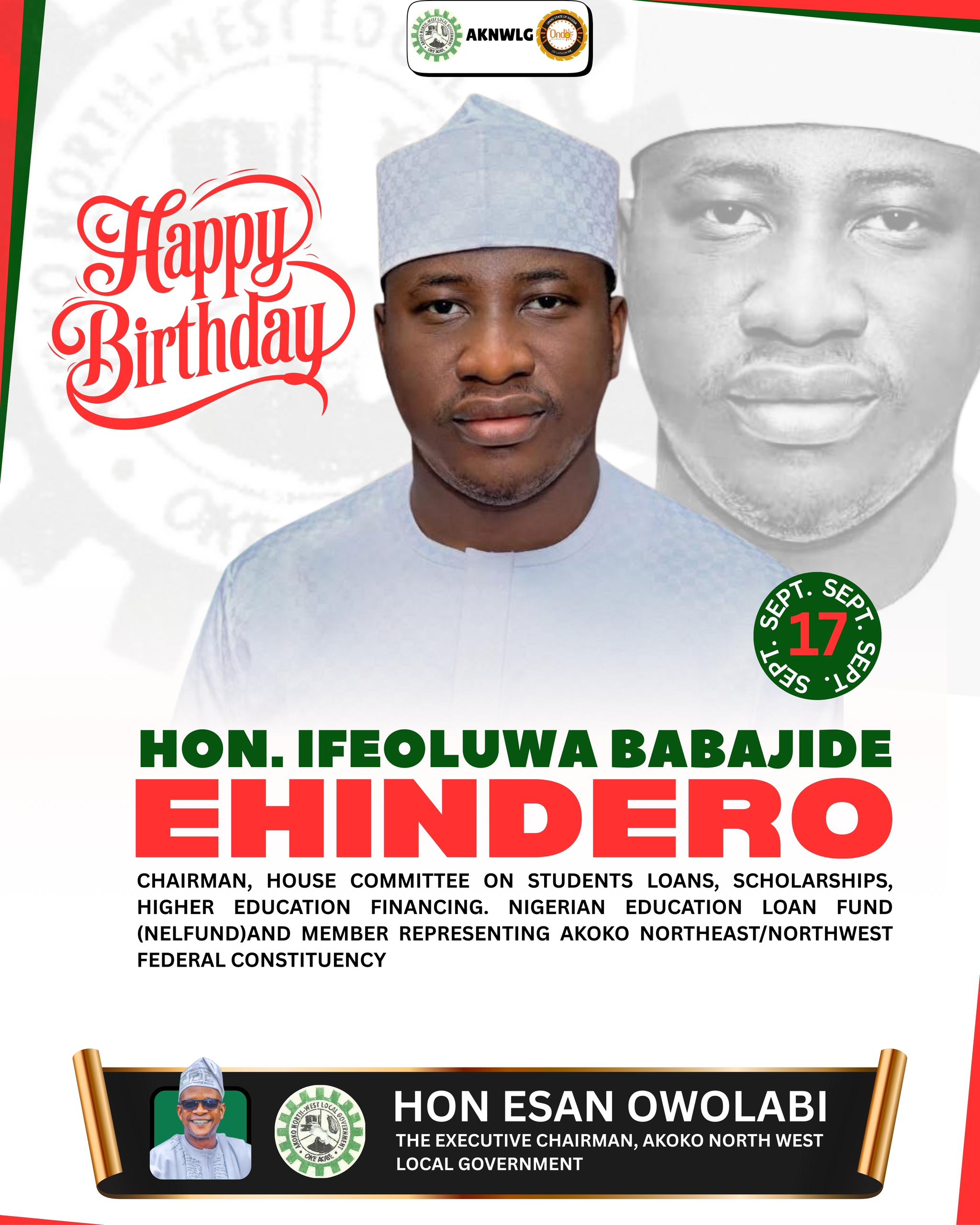 The Executive Chairman of Akoko Northwest Local Government Area, Hon. Model Esan Owolabi, has extended warm congratulations to Hon. Ifeoluwa Ehindero, the Member of the House of Representatives representing Akoko Northwest/Northeast Federal Constituency, on his birthday anniversary today, September 17, 2025.