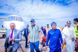 The All Progressives Congress APC National Chairman, Prof Nentawe Yilwatda, has arrived in Jos alongside former Governor Simon Bako Lalong, Hon Yusuf Adamu Gagdi, and other key party stakeholders.